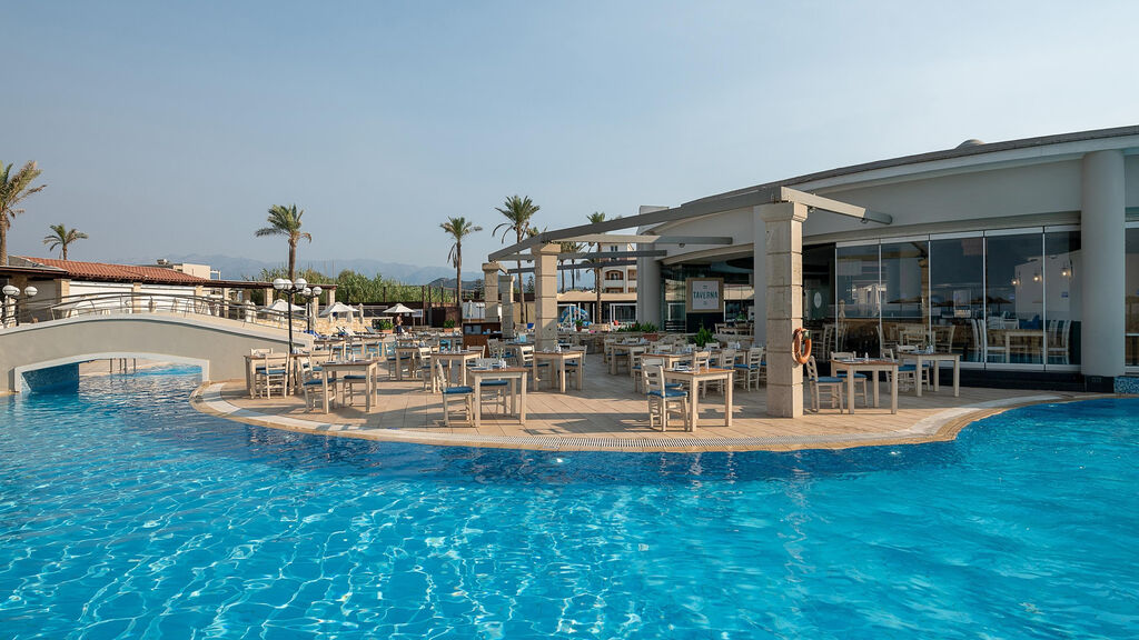 Vybavení hotelu:Vstupní hala s recepcí, amfiteátr, bankomat, minimarket, hlavní restaurace, 3 bazény se sladkou vodou (lehátka a slunečníky zdarma), dětský bazén, parkování, taverna, bary, a´la carte restaurace, kavárna, dětský klub, dětské hřiště.