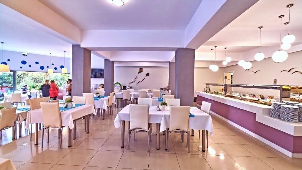 - Hlavní restaurace: snídaně (8.00-10.00), oběd (13.00-14.30) a večeře (19.00-21.00.) formou bufetu