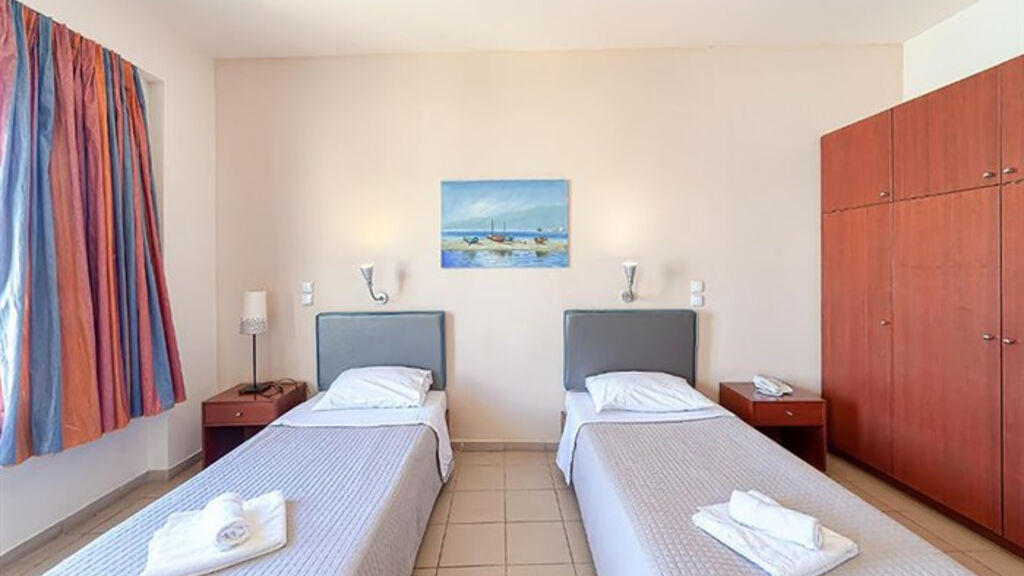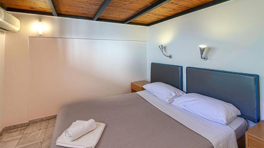dvoulůžková studia s možností až dvou přistýlek, dvoulůžková studia s možností až dvou přistýlek s výhledem na moře, apartmány až pro 4 osoby (2 místnosti), apartmány až pro 4 osoby s výhledem na moře (2 místnosti), apartmány až pro 6 osob (mezonet), koupelna s toaletou, fén, kuchyňský kout (lednice, vařič, základní nádobí, rychlovarná konvice, mikrovlnná trouba), Wi-Fi, telefon, klimatizace, balkon nebo terasa,