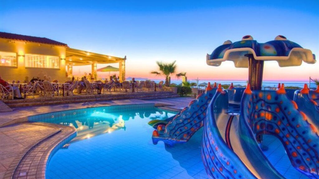 vstupní hala s recepcí, výtah, Wi-Fi, restaurace, snack bar, bar u bazénu, lobby bar, kavárna, 2 bazény, dětský bazén se skluzavkami, sluneční terasa (lehátka a slunečníky u bazénu i na pláži zdarma), dětské hřiště, miniklub, minimarket, animační programy, řecké večery, volejbal, stolní tenis, za poplatek: masáže, billiard, vodní sporty na pláži,