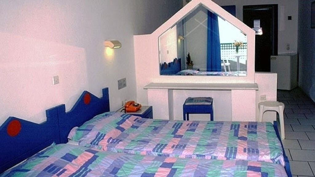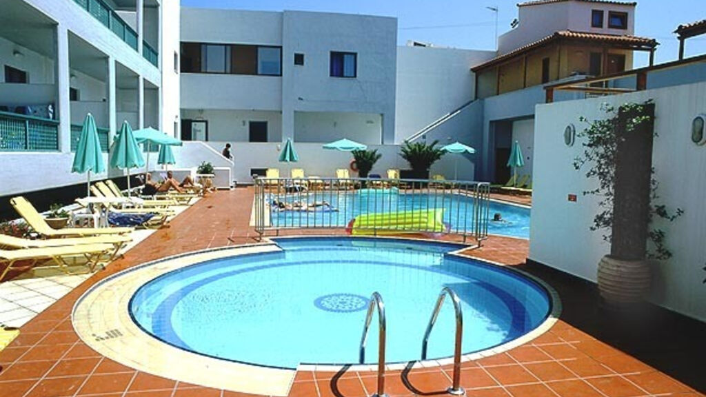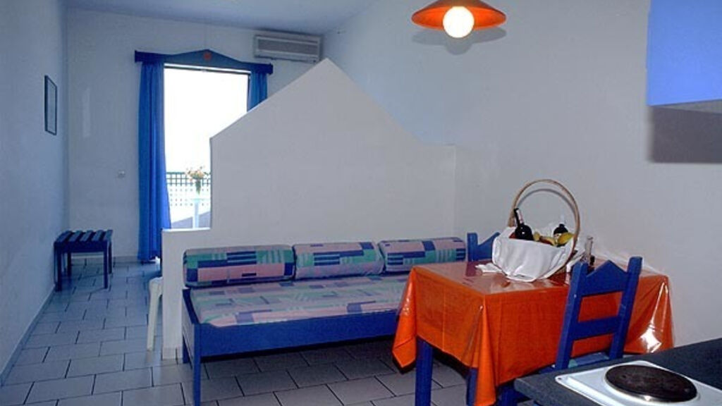 Účelně vybavená 2lůžková studia s možností jedné přistýlky nebo apartmány (2 místnosti) s možností 2 přistýlek (apartmány jen v omezeném počtu a na vyžádání) jsou zařízené v krétském stylu. Mají vlastní sociální zařízení, SAT/TV, klimatizaci, kuchyňský kout (vařič, lednička, základní nádobí), balkon/terasu a trezor (za poplatek).