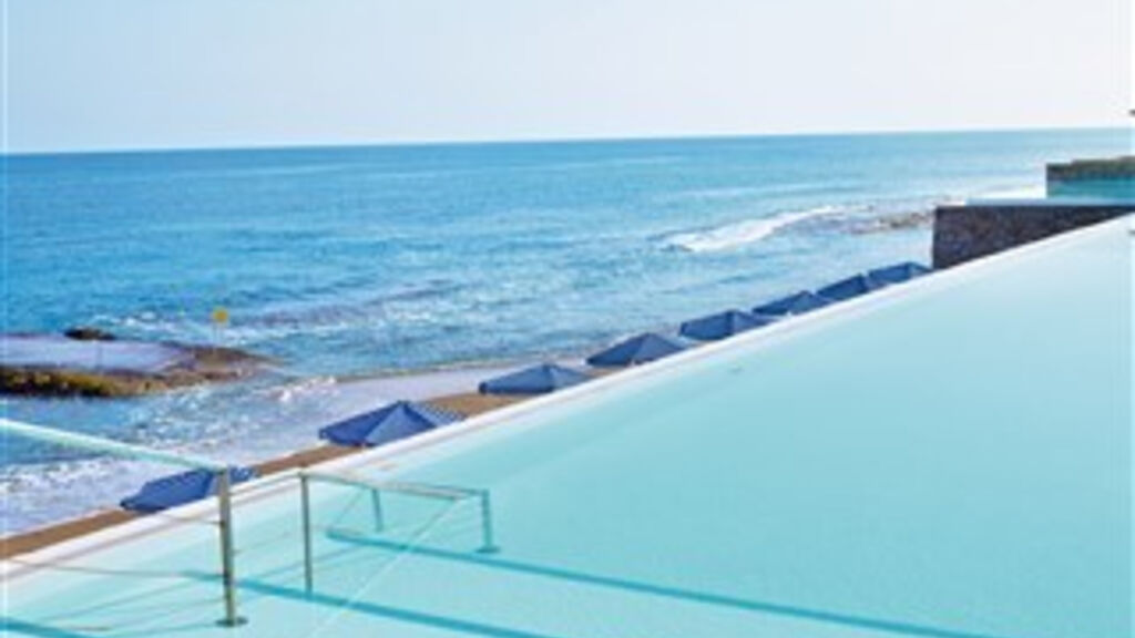 dva bazény s mořskou vodou, dětský bazén s mořskou vodou, 400 metrů dlouhá písečná pláž místy s oblázky při vstupu do moře, sprchy a převlékárny na pláži, lehátka, slunečníky a osušky bez poplatku