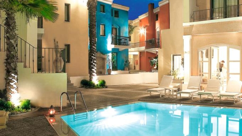 Hotelový komplex u dlouhé písečné pláže, cca 80 km od letiště Heraklion a cca 3 km od přístavu města Rethymnon. V okolí mnoho obchodů, taveren a restaurací.