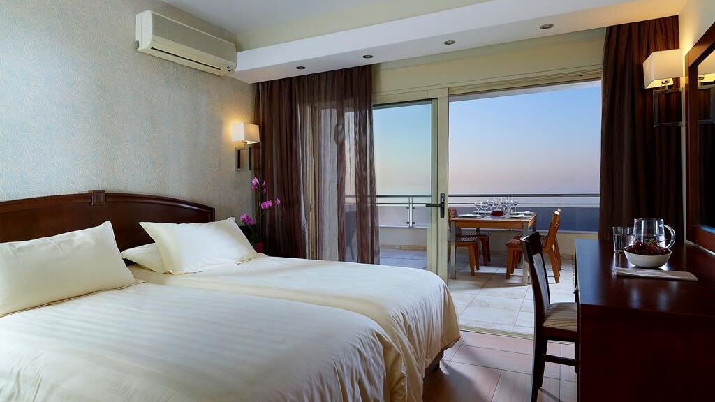 Hotel je vystavěn v osmi patrech do tvaru amfiteátru, s krásnými výhledy na moře a benátskou pevnost Fortezza.