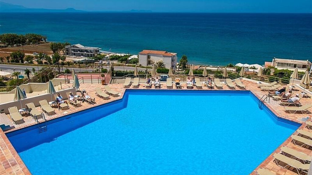 Hotelový komplex na vyvýšenině tvořen bungalovy cca 14 km od města Rethymno. V okolí několik obchodů, restaurací a barů.