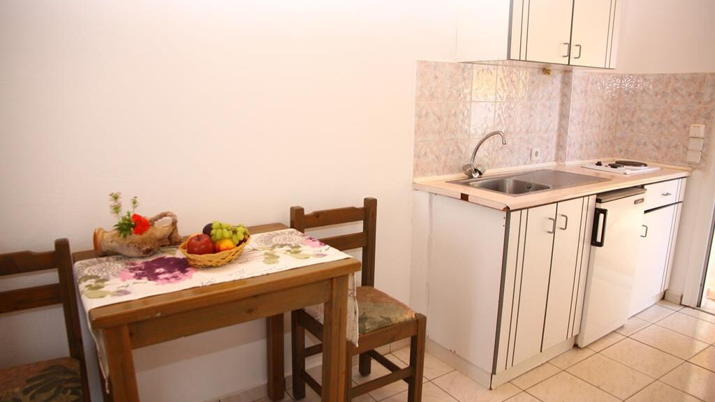Apartmány v tradičním stylu s recepcí, 2 bary, venkovní bazén, dětský bazén, řecké večery s barbeque, večerní soutěže, karaoke, parkoviště, wifi internetovým připojením