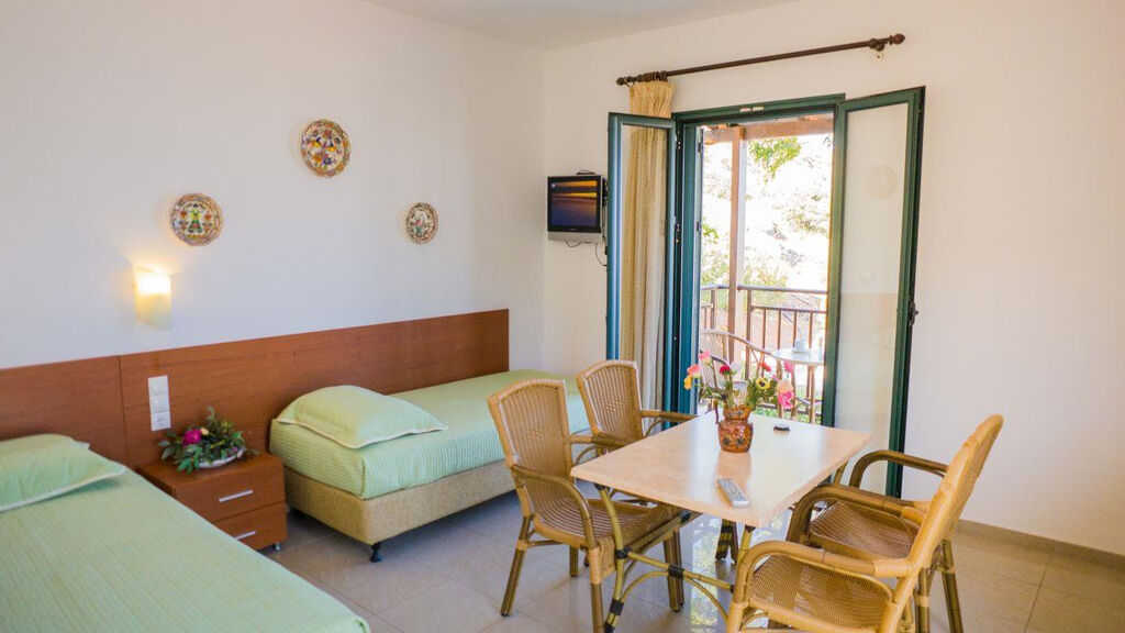Apartmány v tradičním stylu hned vedle hlavní budovy s recepcí, restaurací, bary, bazén, dětský bazén, hřiště, herna, fotbal, volejbal, vodní sporty, půjčovna automobilů a kol, směnárna, parkoviště, wifi internetové připojení.