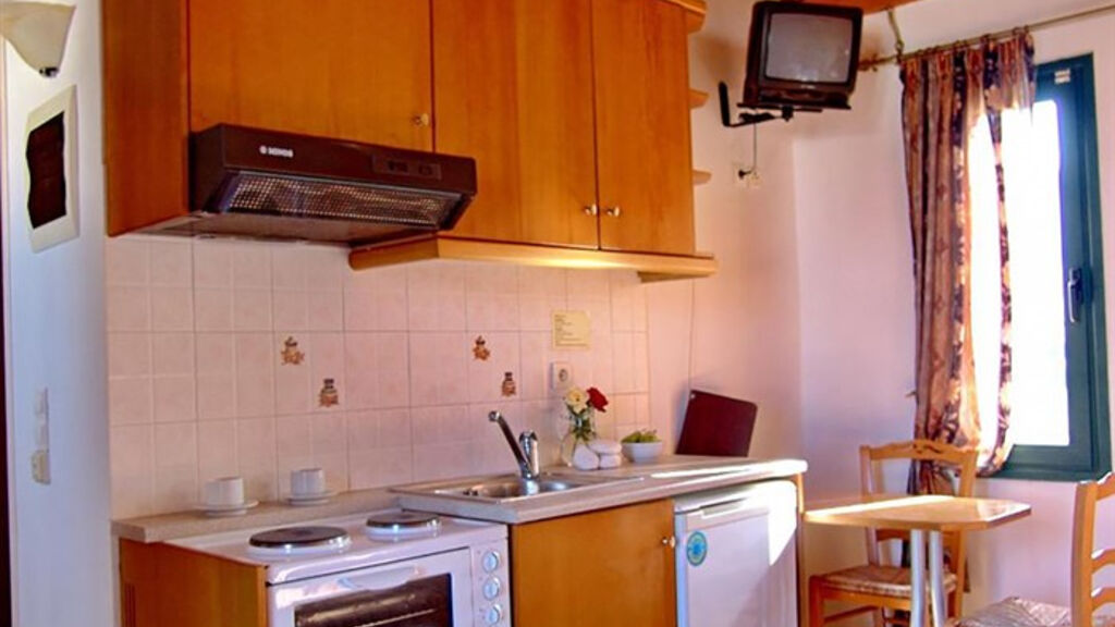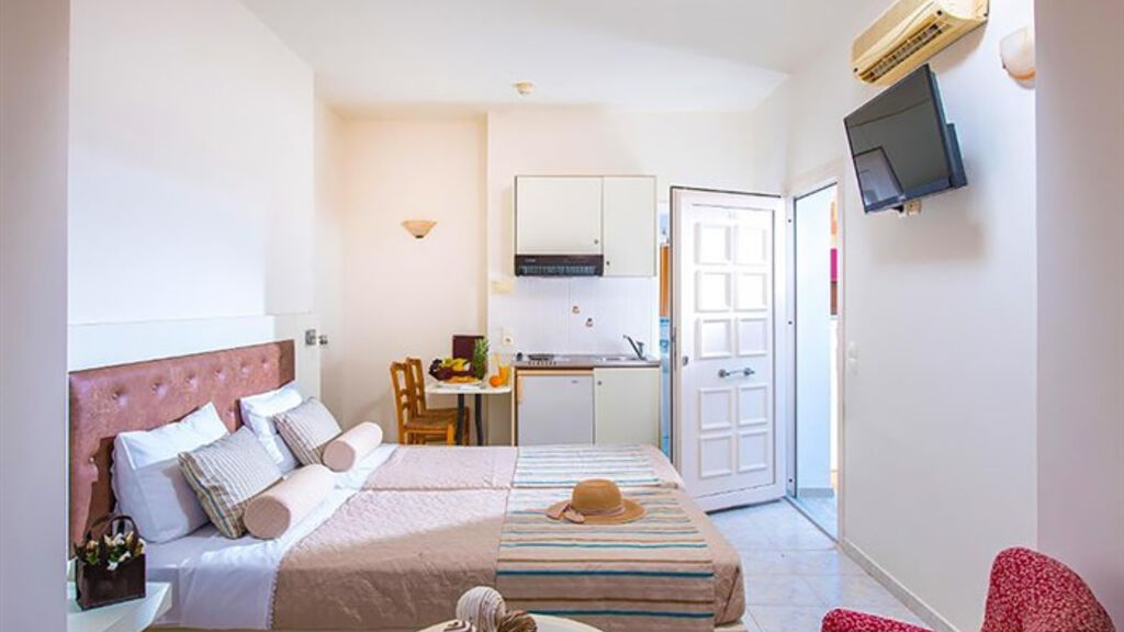 Rodinný apartmánový dům Irida je situovaný nedaleko centra města Malia, které je oblíbenou turistickou destinací s písečnou pláží, tradičními tavernami, kavárnami, ale také živou noční atmosférou. Za návštěvu stojí archeologické naleziště nebo archeologické muzeum, které je jedním z nejvýznamnějších v celém Řecku. Apartmánový komplex disponuje bazénem. Pro hotelové hosty je celý den k dispozici bar. Studia a apartmány jsou vybaveny klimatizací, koupelnou s toaletou, kuchyňským koutem se základním vybavením a balkonem. Doporučujeme párům a klientům, kteří vyhledávají dovolenou v samotném srdci letoviska.