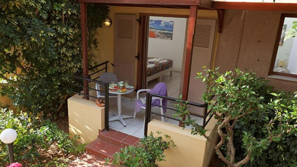 ST: koupelna/WC, telefon, kuchyňský kout, rychlovarná konvice, TV/sat., lednice, klimatizace (za poplatek 7euro/den), balkon nebo terasa. AP: viz ST, oddělená ložnice.