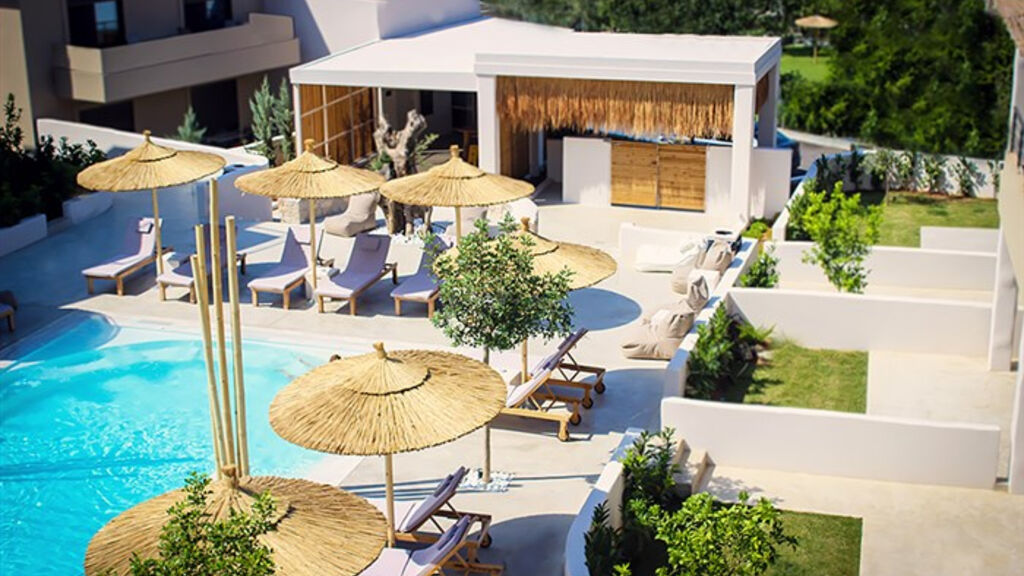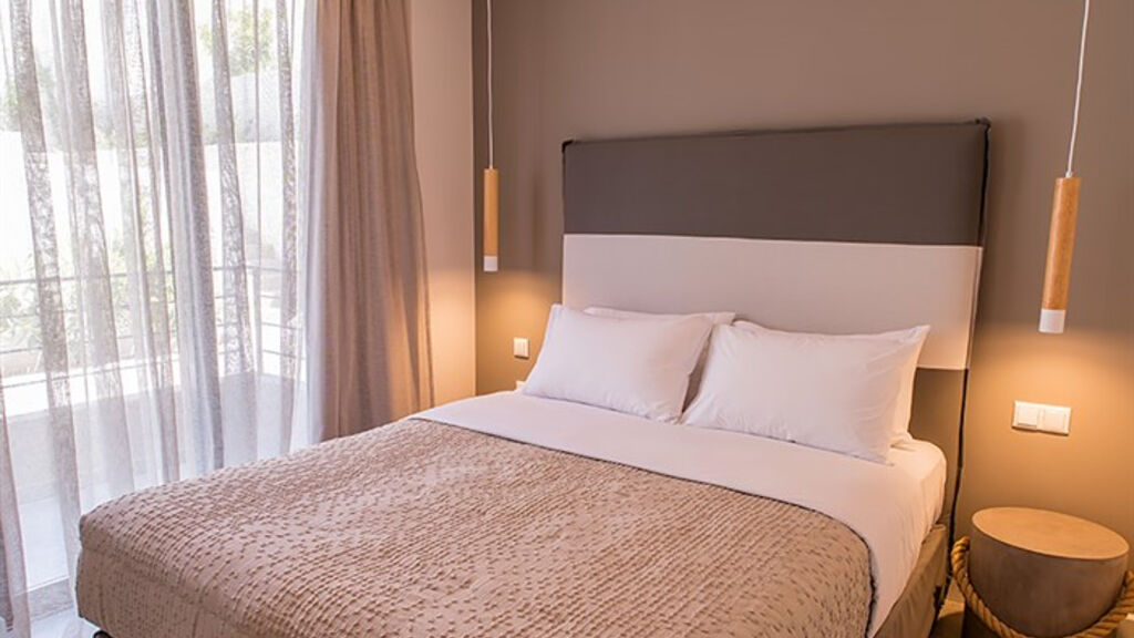 dvoulůžkové pokoje Cozy, dvoulůžkové pokoje Rozoli s částečným výhledem na moře, dvoulůžkové pokoje Elegant s vlastním bazénem, dvoulůžkové pokoje Executive Suite s možností přistýlky a výhledem na bazén, koupelna s toaletou, fén, Wi-Fi, SAT/TV, telefon, trezor, klimatizace, minibar, set na přípravu čaje/kávy, balkon nebo terasa,