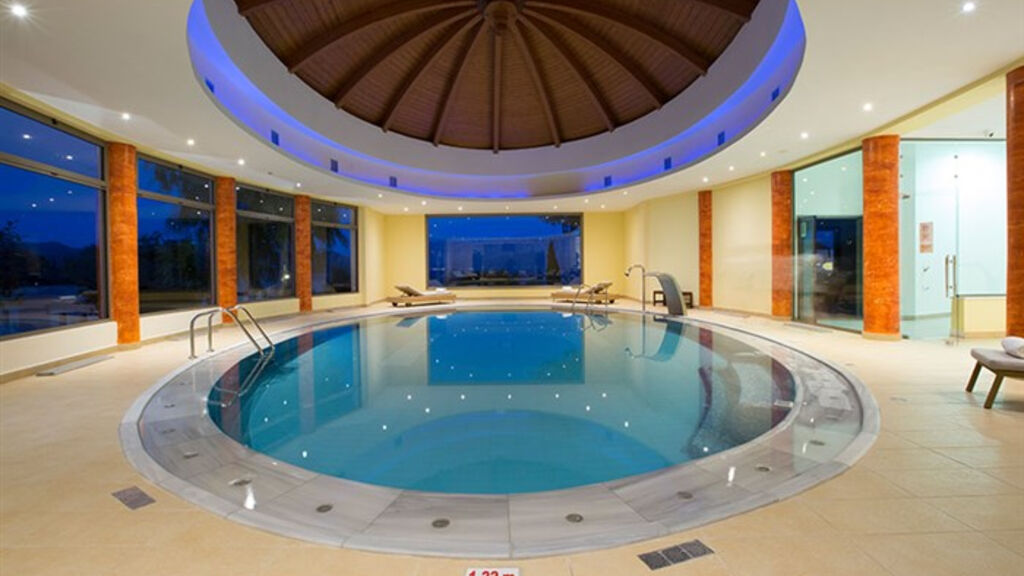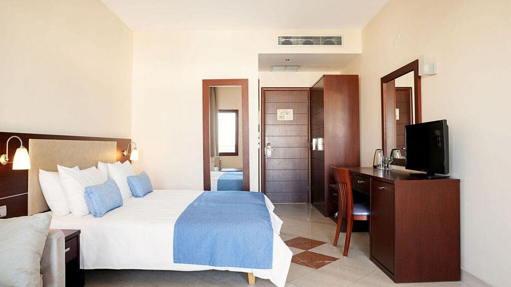 Vybavení hotelu:Komplex tvořený několika budovami, 135 pokojů, vstupní hala s recepcí, restaurace, taverna à la carte, snack bar, konferenční místnost, krytý bazén, spa, minimarket. Venku bazén, bazén pro děti, bar u bazénu, terasa na slunění, lehátka a slunečníky zdarma.