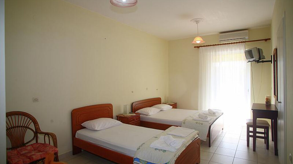 Dvoulůžková studia s možností přistýlky jsou vybaveny vlastním sociálním zařízením, menší kuchyňkou se základním vybavením, klimatizací (za poplatek cca 6€/den), ledničkou, TV a balkonem. Úklid, výměna povlečení a ručníků probíhá pouze dvakrát za pobyt.