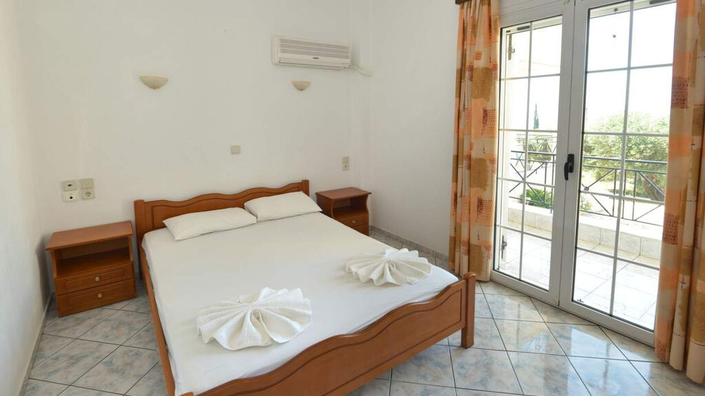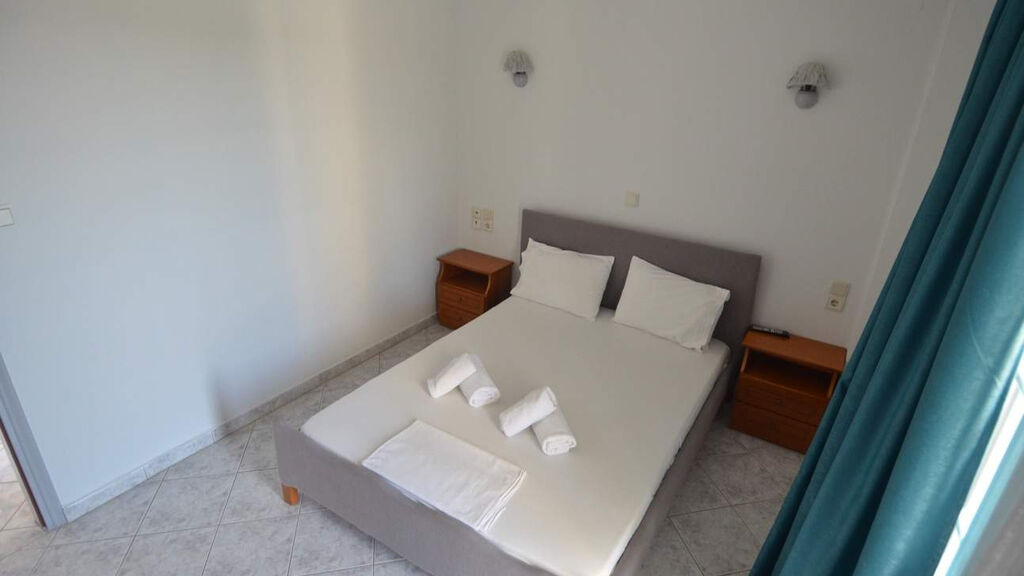 Penzion ELEONAS s bazénem leží 350m od jedné z nejhezčích pláží Mega Ammos. Apartmán pro 2-4 osoby a studia pro 2–3 osoby jsou vybavena kuchyňským koutem, soc. zařízením, TV, klimatizací v ceně zájezdu, wi-fi připojením zdarma, trezorem zdarma a velkým balkonem/terasou. Téměř z celého ubytování je výhled na moře.