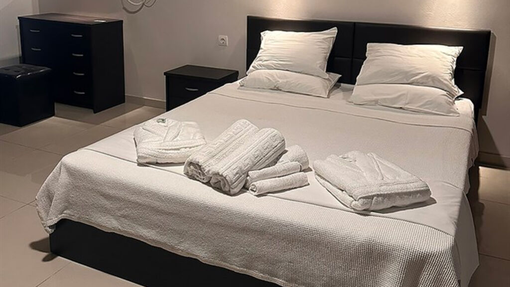 dvoulůžková studia s možností až dvou přistýlek (pro děti do 12 let), apartmány až pro 4 osoby (2 místnosti) , koupelna s toaletou, fén, kuchyňský kout (vařič, lednice, základní nádobí), klimatizace (za poplatek cca 5 €/den/studio; cca 7,5 €/den/apartmán), trezor, minibar, SAT/TV, Wi-Fi, telefon, set na přípravu čaje/kávy, balkon nebo terasa, dětská postýlka na vyžádání zdarma,