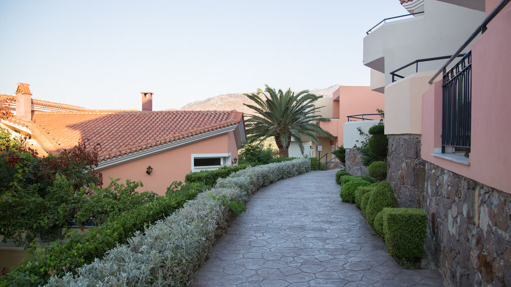 Hotel tvoří několik budov zasazených ve svahu v pěkně udržované subtropické zahradě s palmami.
