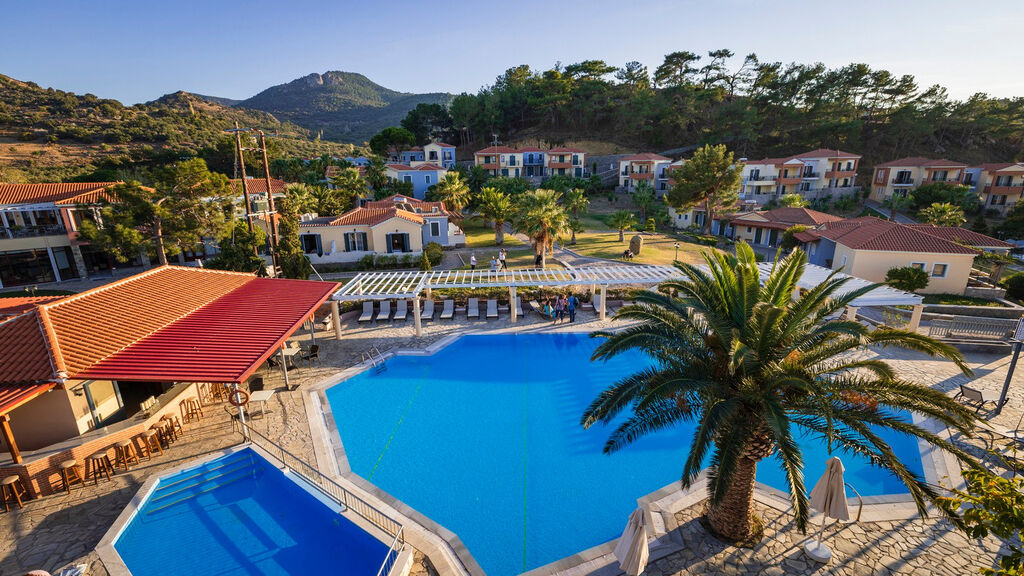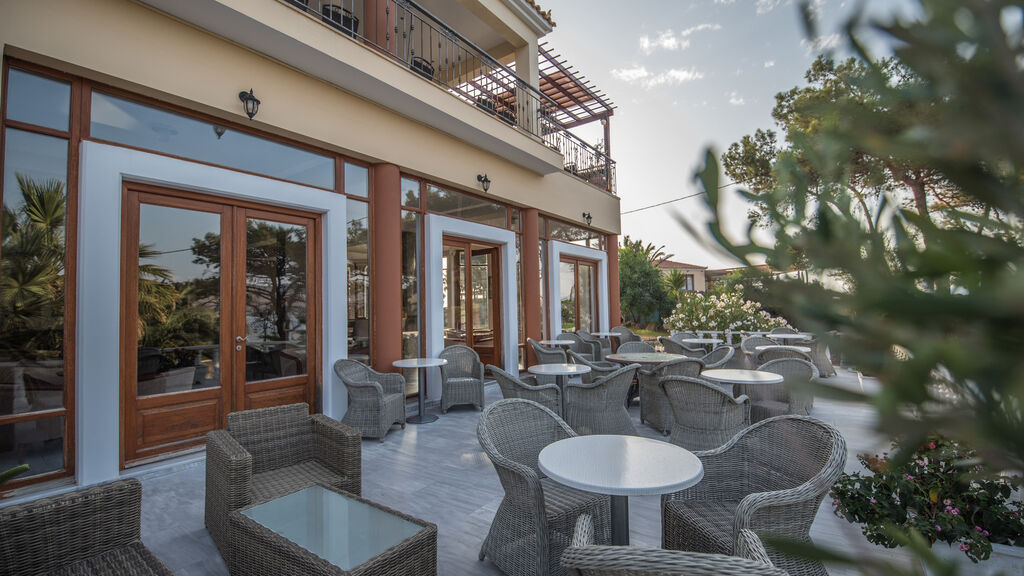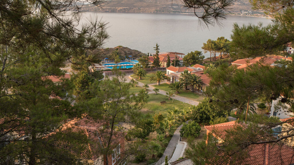 Kvalitní hotelový komplex se skládá z několika nízkých budov umístěných v udržované zahradě se nachází na klidném místě cca 1 km od střediska Petra s obchody, bary a restauracemi. Letiště v Mytilini je vzdáleno cca 65 km a autobusová zastávka cca 500 m od hotelu (Molyvos, Eftalou, Anaxos). Z areálu hotelu jsou krásné výhledy na Egejské moře a do okolí. Hotel se nachází v mírném svahu. Nejbližší restaurace cca 200 m od hotelu.