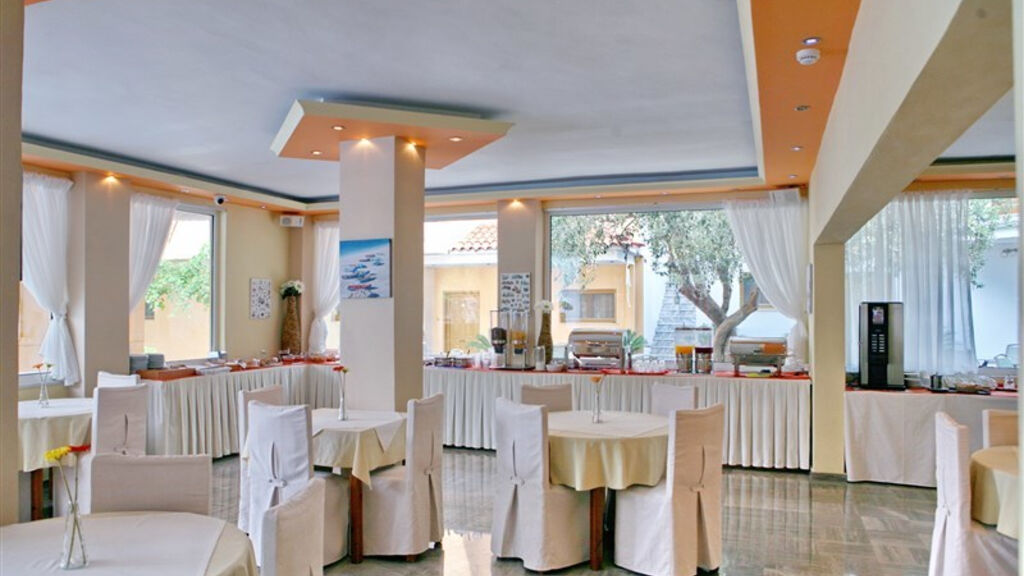 Menší hotel s rodinnou atmosférou umístěný v zahradě s ovocnými a olivovými stromy. Centrum městečka s tavernami a obchůdky je vzdáleno cca 800 m.