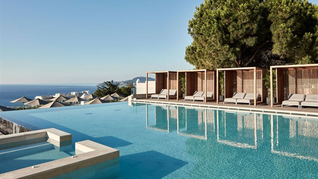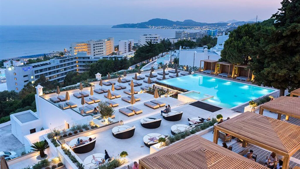 Tento pětihvězdičkový luxusní hotel se nachází na okraji letoviska Faliraki ve svahu, cca 500 m nad pláží.