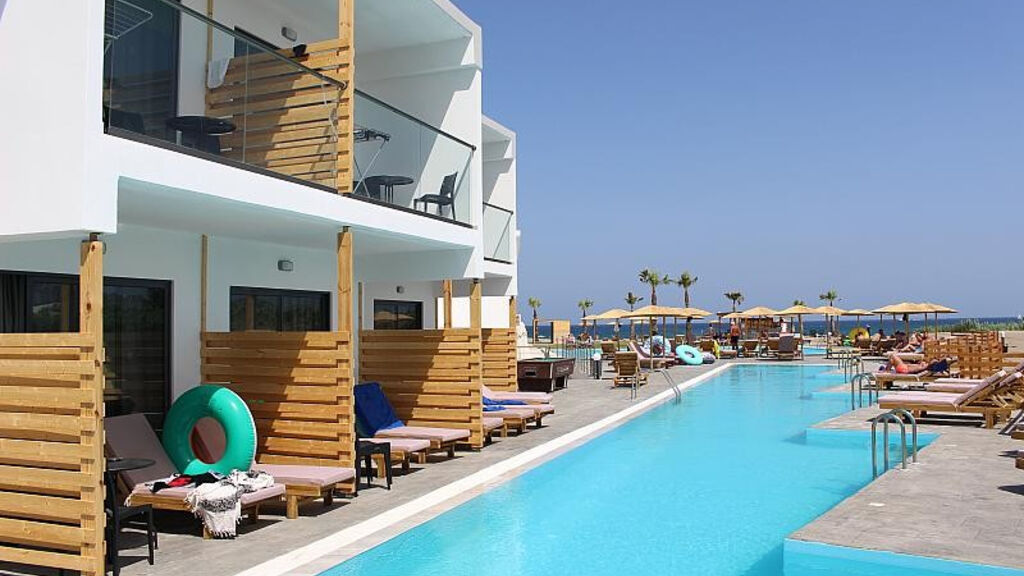 Poloha hotelu:1,5 km od centra letoviska Faliraki přímo u dlouhé písečné pláže. V okolí taverny, restaurace, bary a obchody. Zastávka autobusu (spojení s městy Lindos, hlavní město Rhodos cca 12 km). Aquapark cca 2,5 km od hotelu. Mezinárodní letiště Rhodos je 16 km.
