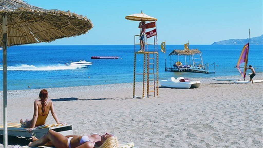 Pláž Písčito-oblázková pláž s pozvolným vstupem do moře, barovým servisem, sprchami a WC (lehátka a slunečníky za poplatek) se nachází přímo u hotelu.
