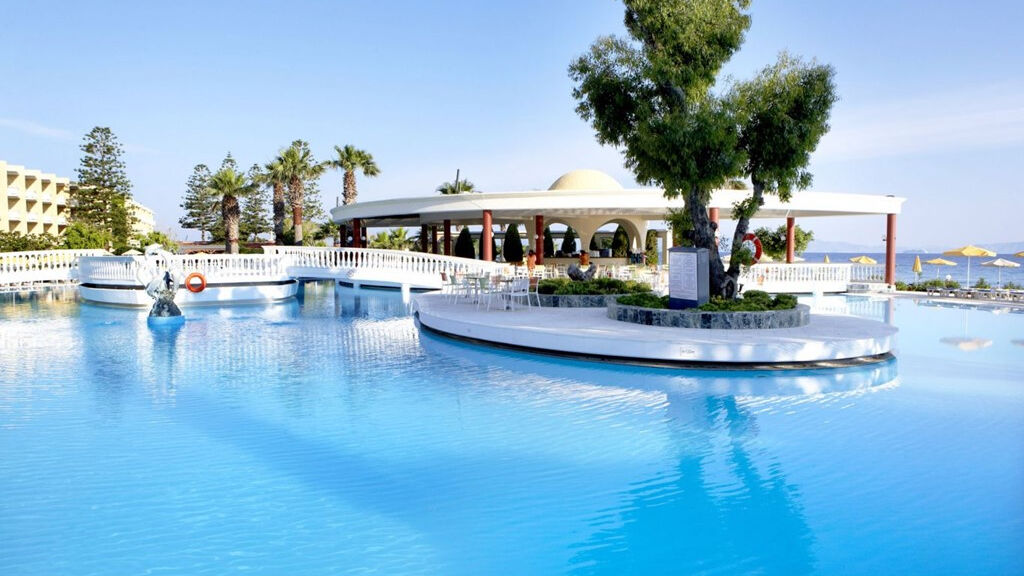 Vybavení: Vstupní hala s recepcí, klimatizovaná hlavní restaurace, italská á la carte restaurace, taverna Zorbas, hlavní bar, bazénový bar Aphrodite, bazénový bar Thalassa, 3 venkovní bazény (jeden z nich s dětskou částí a skluzavkami), dětský bazén, lehátka a slunečníky u bazénu zdarma, parkoviště, zahrady, venkovní divadlo, dětské hřiště, vnitřní i venkovní hrací plocha, sauna, plážové hry, boccia, venkovní tělocvična, šipky, aerobic, lukostřelba, minigolf, vodní aerobic, vodní polo, večerní programy (řecký večer, 2x týdně živá hudba, hudební vystoupení v divadle). Zdarma: animační programy, mini club, dětské hřiště, volejbal, fitness, stolní tenis, minigolf, sauna, tenisové kurty (bez osvětlení). Za poplatek: internetová kavárna, elektronické hry, hlídání dětí, salon krásy Aphrodite (kadeřnictví, nehtové studio, masáže, ošetření pleti), lékař, minimarket, obchod se suvenýry, půjčovna aut, motocyklů a horských kol, windsurfing, lekce potápění. Pokoje: Komfortní pokoje s možností jedné přistýlky jsou vybaveny klimatizací, satelitní TV, telefonem s přímou volbou, miniledničkou (láhev vody po příjezdu zdarma), trezorem (za poplatek), WiFi přístupem na internet (zdarma), koupelnou se sprchou, WC a fénem, balkonem či terasou. Pokoje s výhledem na moře za příplatek.