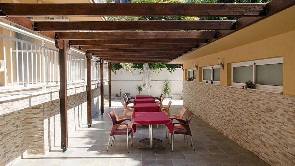 48 pokojů, vstupní hala s recepcí, výtah, trezor za poplatek, terasa na slunění, pronájem aut a kol za poplatek.