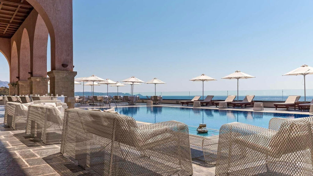 - Junior Suita, Superior, Vyšší patro, Výhled moře: prostornější 37 m2, terasa, soukromý bazén, lehátka, vyšší patro, výhled moře