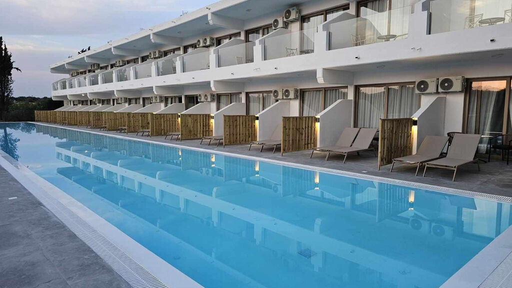 Poloha hotelu:Zrenovovaný hotel (renovace v zimě 2024). Změna designu hlavní budovy a vstupní haly, nová hlavní restaurace, moderní terasa s posezením, bazén s malým vodním parkem včetně snack baru, pokoje s novým sdíleným bazénem.Cca 400 m od centra letoviska Kolymbia s obchody, tavernami a bary. Eukalyptová alej cca 300 m od hotelu. Cca 23 km od hlavního města Rhodos (letiště 27 km od hotelu) a 12 km od centra Faliraki.