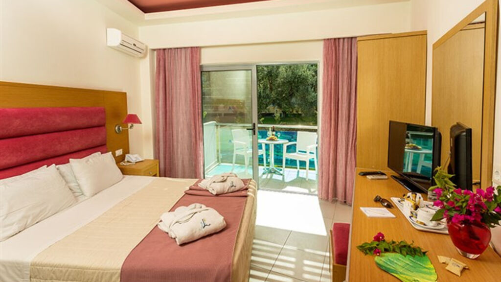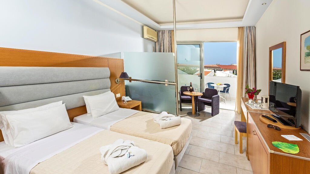 dvoulůžkové pokoje s možností přistýlky, dvoulůžkové pokoje Promo s možností přistýlky (pokoje jsou vybaveny shodně jako standardní pokoje, bez balkonu či terasy a mohou být situovány v méně příznivé poloze), dvoulůžkové pokoje Superior s možností přistýlky, rodinné pokoje Promo až pro 4 osoby (jsou vybaveny jako ostatní pokoje, jsou menší a umístěny v přízemí), koupelna s toaletou, fén, klimatizace, lednice, trezor, telefon, SAT/TV, Wi-Fi, set na přípravu čaje/kávy, balkon nebo terasa, dětská postýlka na vyžádání zdarma,