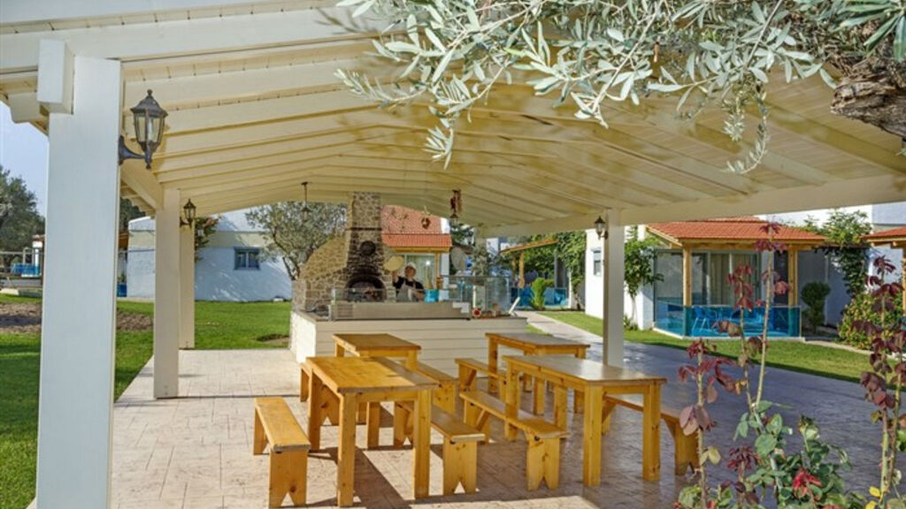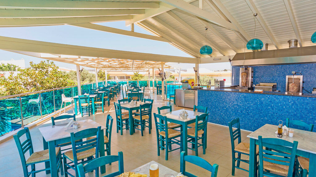 Vstupní hala s recepcí, restaurace s terasou, lobby bar, bar u bazénu, snack bar, bazén, dětský bazén, dětské hřiště, dětský klub, minimarket. Hotel pořádá mezinárodní večerní programy pro děti i dospělé a jednou týdně řecký večer.
