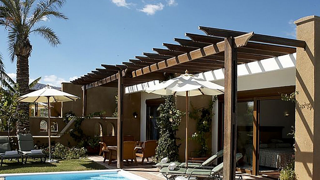 Krásnou vlastní zahradu s vyhřívaným bazénem, pergolu a terasu na slunění. Koupelnu/WC, jacuzzi, klimatizaci, TV/sat. s hudebním kanálem, DVD, minibar, elektronický trezor, telefon s přímou volbou, internetové připojení (za poplatek).