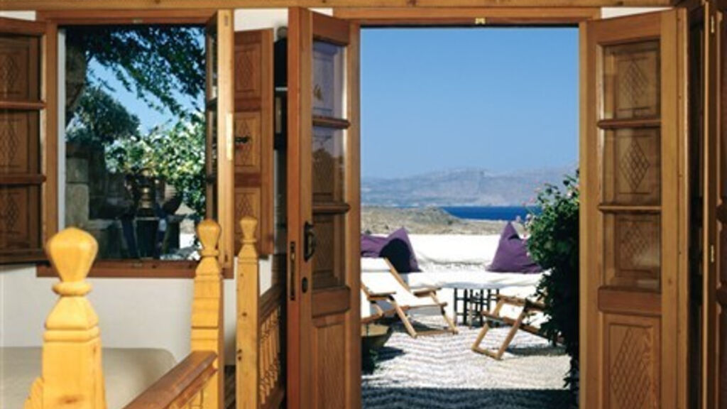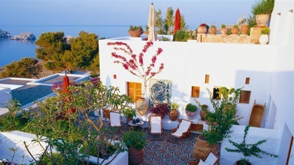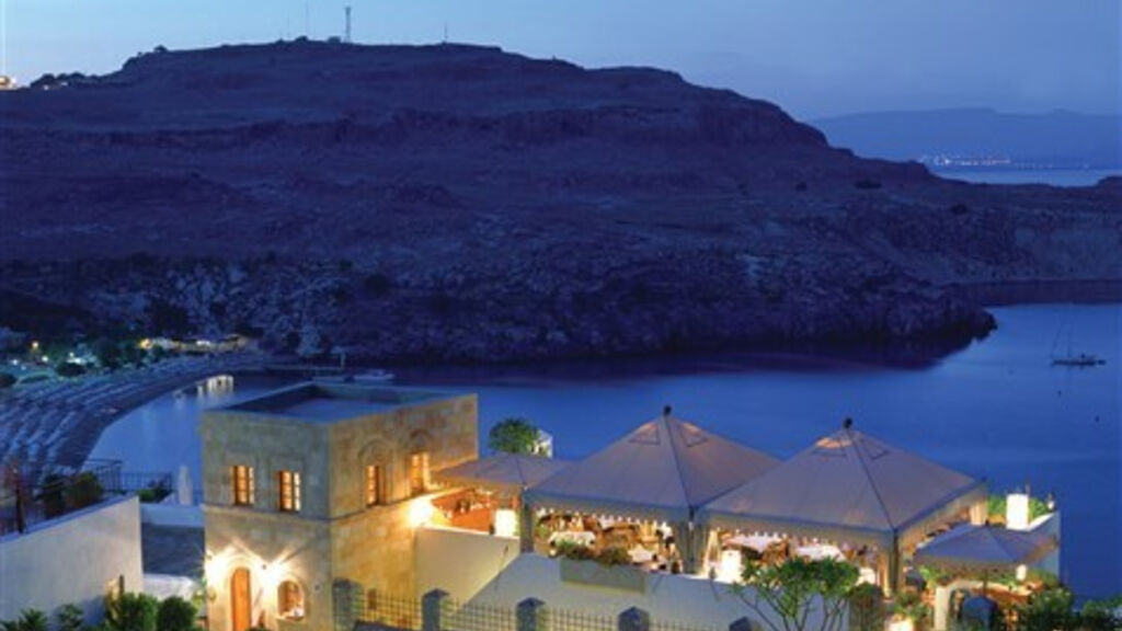 Luxusní hotel Melenos Lindos se nachází nad letoviskem Lindos, 45 kilometrů jižně od hlavního města.
