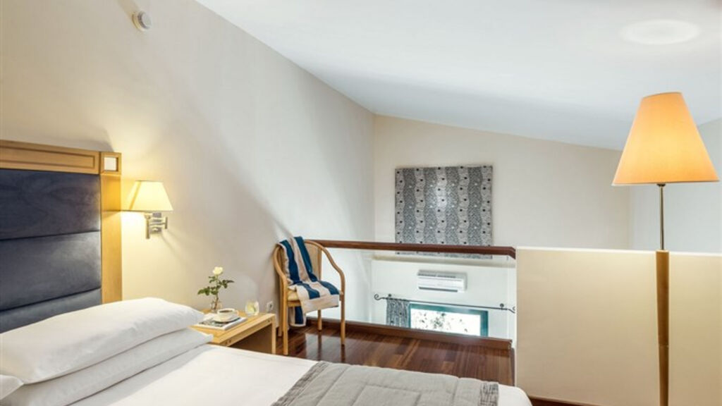 Dvoulůžkový pokoj směrem k moři (DRSS): koupelna/WC včetně plného vybavení (župany, vysoušeč vlasů), individuální klimatizace, telefon, TV/sat., minibar za poplatek, trezor, balkon nebo terasa. Dvoulůžkový pokoj s výhledem na moře (DRSV): viz DR, výhled na moře. Mezonet směrem k moři (MZSS): viz DR, obývací pokoj a koupelna/WC v přízemí, ložnice v 1. patře, DVD přehrávač, v každé místnosti TV a klimatizace. Suita typu mezonet (SUMZ): viz DR, obývací pokoj v přízemí, ložnice v patře, 2x klimatizace, 2x TV/sat.,