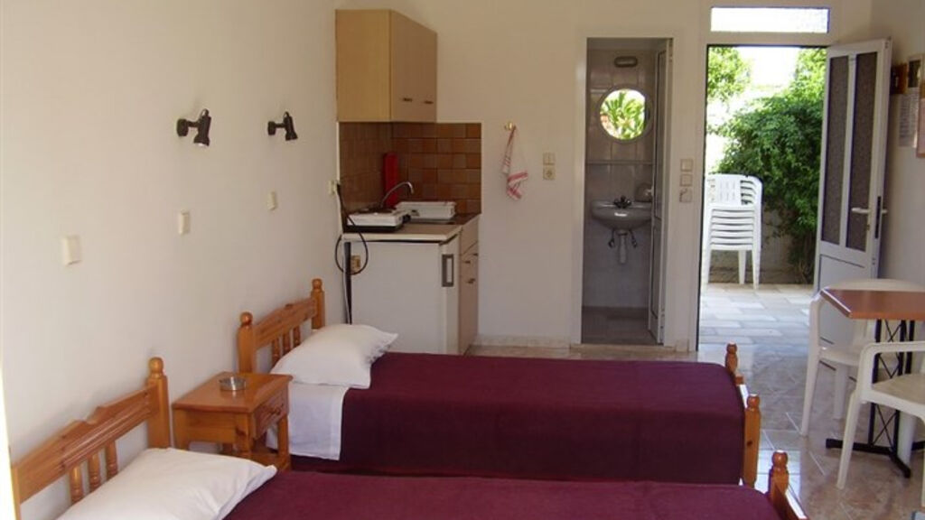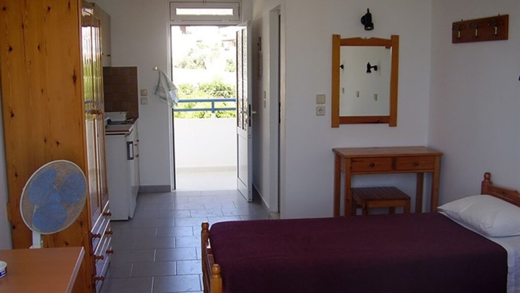 dvoulůžková studiasociální zařízení (WC, sprcha)kuchyňský kout (lednice, vařič, varná konvice, základní nádobí)klimatizace (za poplatek cca 9 €/den)trezor (za poplatek cca 2 €/den)balkon nebo terasa