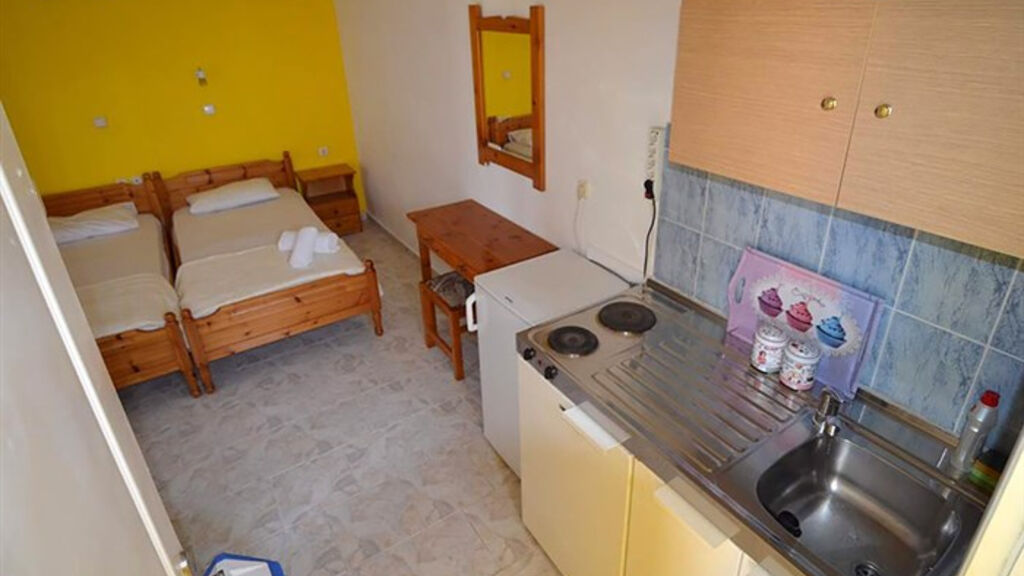 dvoulůžková studia s možností až dvou přistýlekkoupelna s toaletoukuchyňský kout (lednice, vařič, základní nádobí)klimatizace za poplatek (za poplatek cca 10 €/den)trezor, Wi-Fi konvice na kávu nebo čajbalkon nebo terasadětská postýlky na vyžádání zdarma