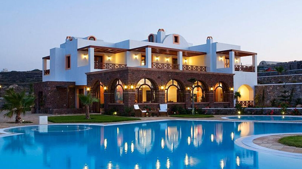 Na útesu v blízkosti vesničky Akrotiri s nádhernými výhledy na západ slunce. Do centra s několika obchody a tavernami cca 800m.