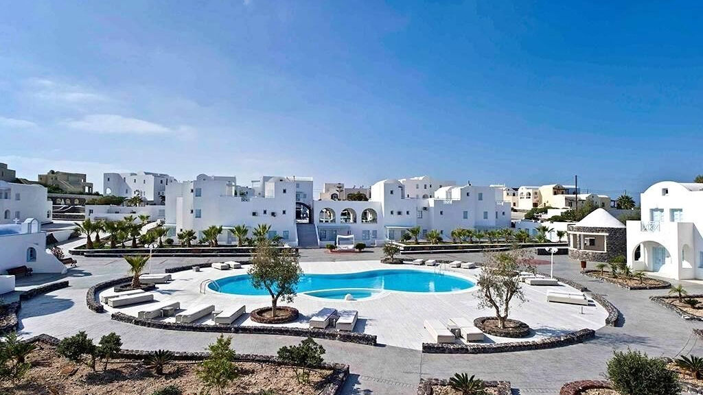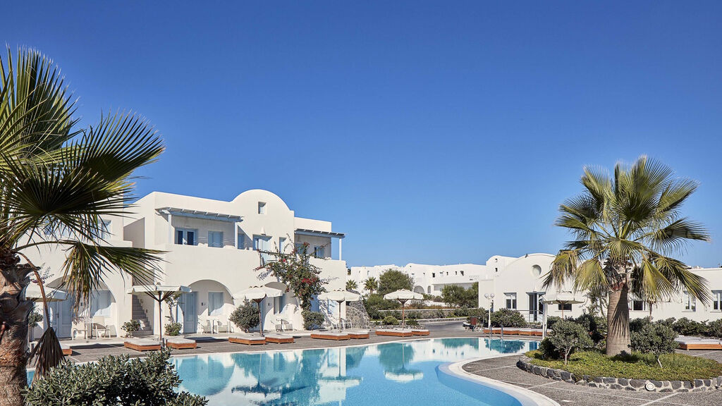 Základní informace:Tento luxusní 4 hvězdičkový hotel se nachází nedaleko centra města Fira. Z některých pokojů má krásný výhled na moře a kráter sopky. Nabízí ubytování v několika budovách, které jsou rozmístěny v okolí několika bazénů a v hotelové zahradě. Pokoje jsou vkusně a elegantně zařízené a budete se zde tedy cítit jako v pohádce. Hotel nabízí služby na velmi vysoké úrovni a doporučujeme jej všem věkovým kategoriím a rodinám s dětmi.