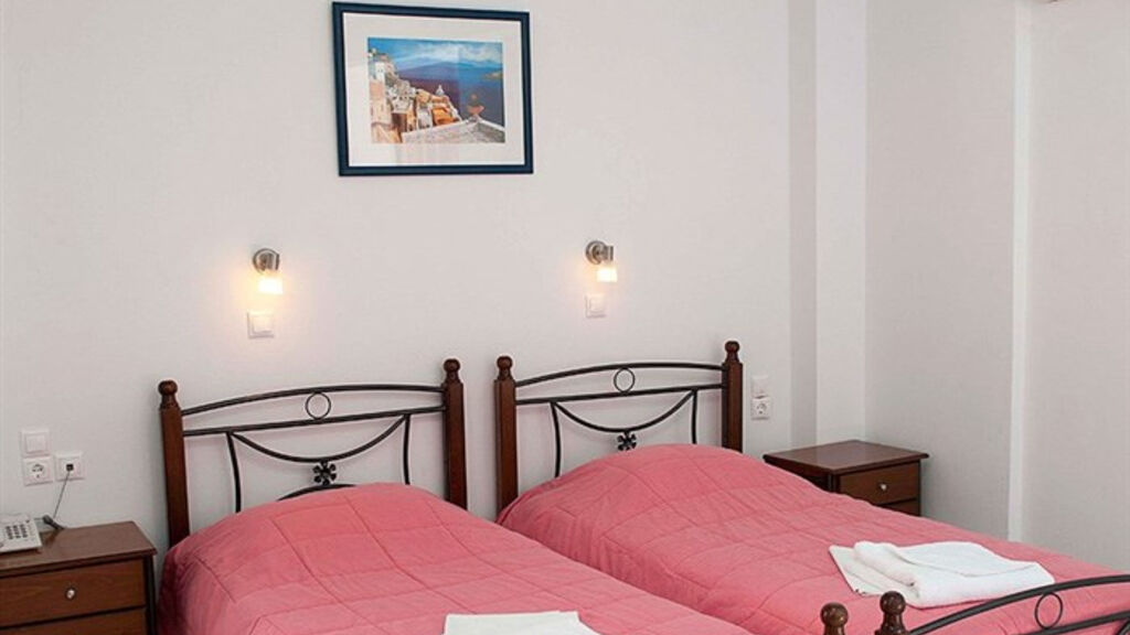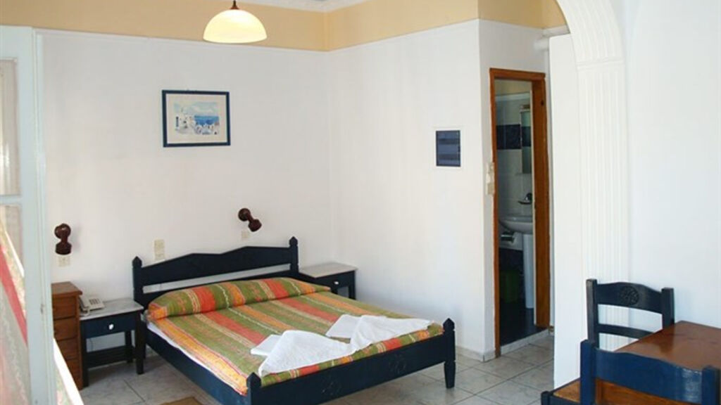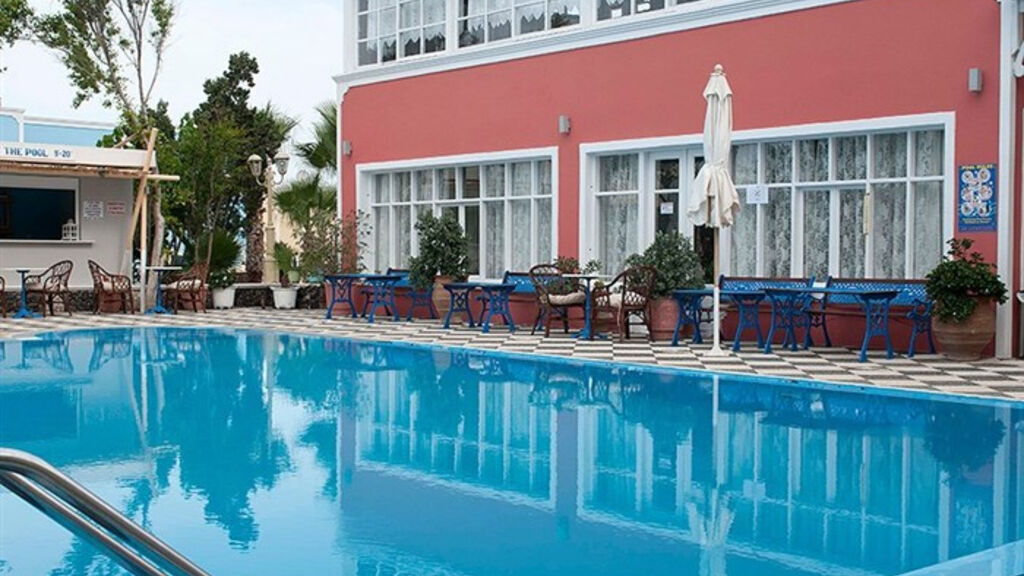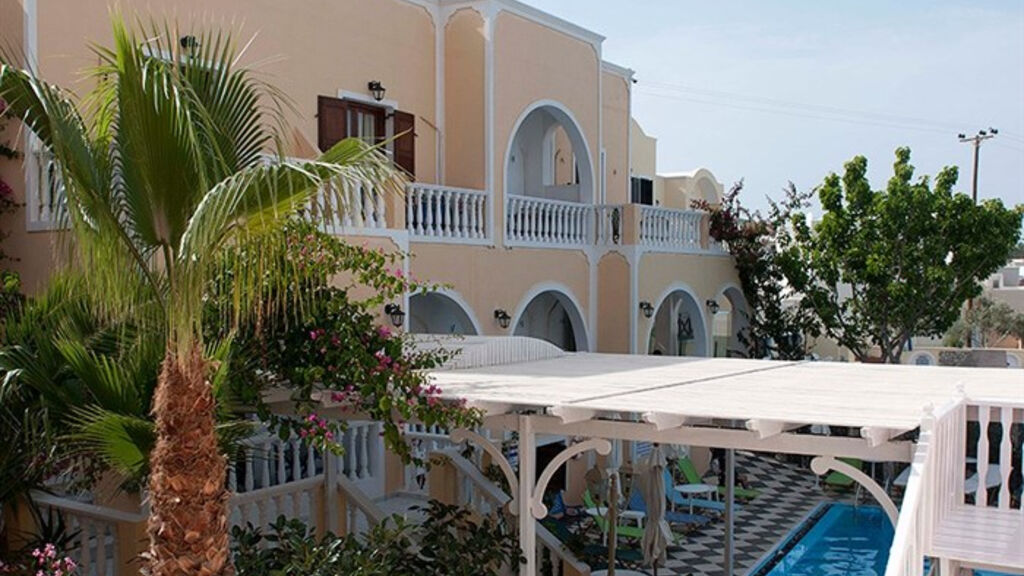 Rodinný komplex hotelových pokojů a studií s příjemnou atmosférou, zařízený v tradičním kykladském stylu, je situován v klidné části letoviska Kamari (Řecko, Santorini), asi 100 m od tmavé písčito-oblázkové pláže. Hostům je k dispozici recepce, TV, místnost, Wi-Fi v lobby zdarma, internetový koutek (za poplatek), bar, snack bar u bazénu a místnost pro podávání snídaní. V pěkně udržované zahradě se nachází 2 bazény, dětský bazén, lehátka a slunečníky jsou u bazénu zdarma, na pláži za poplatek. Asi 2 minuty chůze od hotelu se nachází pobřežní promenáda se spoustou obchůdků, restaurací a taveren. Toto ubytování s výbornou polohou v blízkosti pláže i centra letoviska doporučujeme všem věkovým kategoriím.