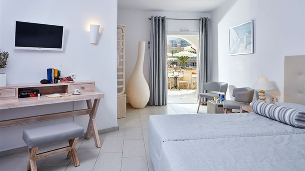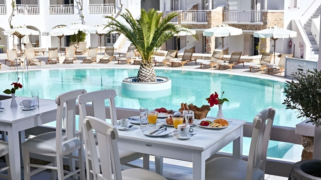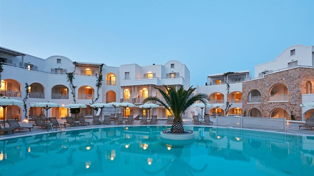 Poloha hotelu:V letovisku Kamari, cca 6 km od letiště a 8 km od hlavního města Thira. Možnost využít místní autobusové spojení. V okolí mnoho obchodů, restaurací a barů.
