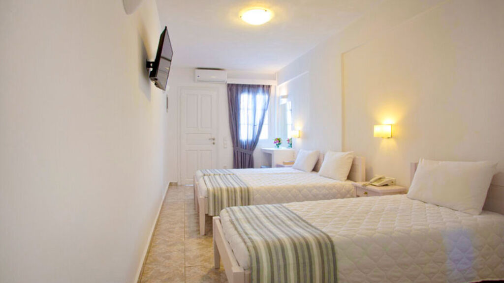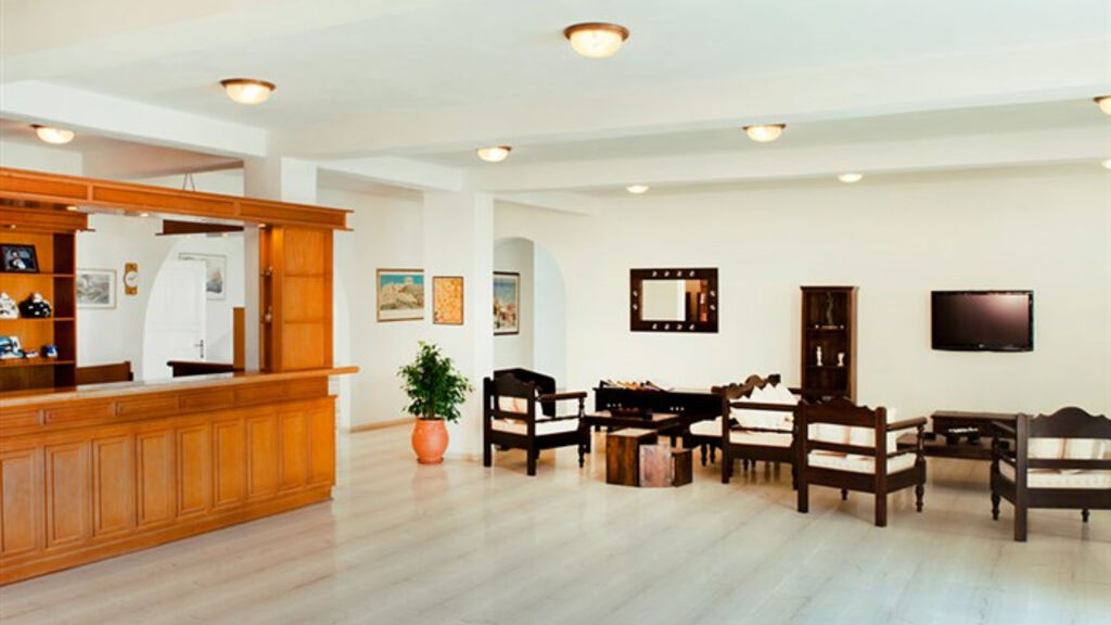 Tento příjemný aparthotel leží v boční uličce oblíbeného letoviska Kamari, pouhých 80 m od široké pláže s tmavým pískem. Skládá se ze tří budov – hotelová část, budovy studií, apartmánů a bazénu s dlážděnou terasou s lehátky a slaměnými slunečníky. K hlavní třídě, která lemuje pobřeží a kde najdete spoustu obchůdku a taveren, se dostanete během 5 minut chůze. Doporučujeme všem klientům, kteří touží po relaxu a příjemně strávené dovolené.