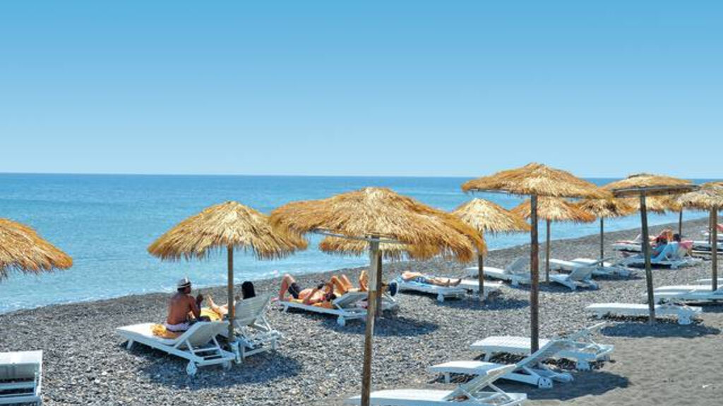 Pláž s hrubým lávovým pískem a pozvolným vstupem do moře je vzdálená cca 400 m od hotelu. Slunečníky, lehátka a vodní sporty na pláži za poplatek.