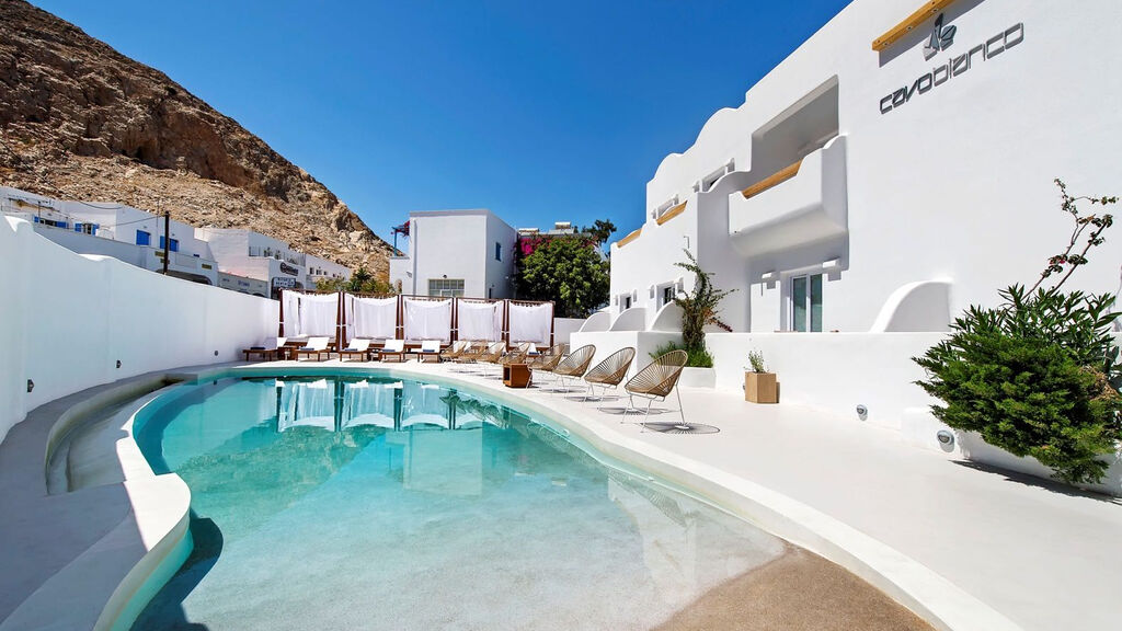Hotel se nacházá v letovisku Kamari, v bezprostřední blízkosti barů, restaurací a obchodů. Město Fira je vzdáleno cca 8 km od hotelu. Mezinárodní letiště Santorini je od hotelu vzdáleno cca 6 km.