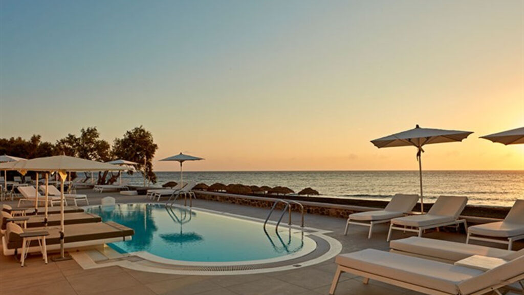 Poloha hotelu:Nedávno vybudovaný hotel přímo u pláže v letovisku Kamari, v docházkové vzdálenosti obchody, bary, restaurace, ve městě zastávka hromadné autobusové dopravy. Možný hluk z letadel.