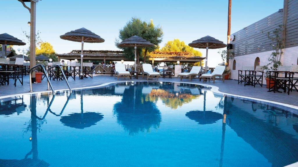 Vybavení hotelu: vstupní hala s recepcí, restaurace, bar, bazén (lehátka a slunečníky zdarma), společenská místnost s TV, tématická restaurace,