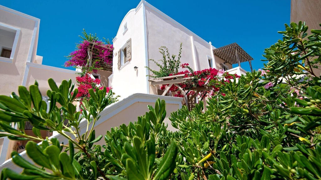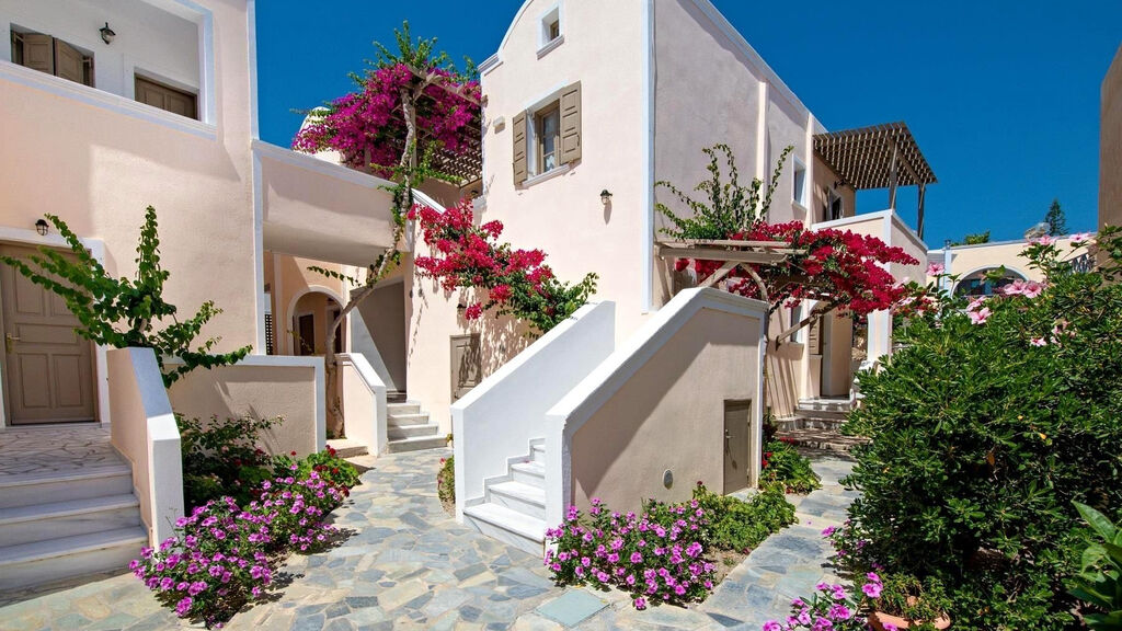 Hotel cca 6 km od letiště a cca 8 km od hlavního města Thira (spojení linkovým autobusem, zastávka cca 150 m). V okolí obchody, restaurace, taverny.