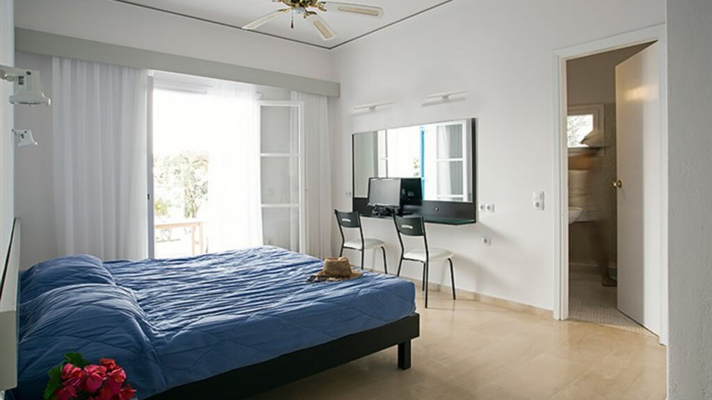 - Dvoulůžkový pokoj: koupelna/WC (vysoušeč vlasů), klimatizace, TV/sat., telefon, lednička, trezor za poplatek, balkón/terasa.