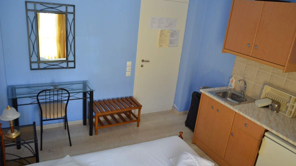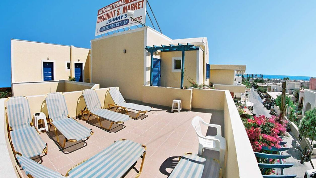 Penzion MARY s bazénem (lehátka a slunečníky u bazénu zdarma) leží 200 m od pláže, 100 m od centra letoviska Kamari. Studia pro 2-3 osoby jsou vybavena kuchyňským koutem, soc. zařízením, wi-fi připojením zdarma a trezorem zdarma a trezorem zdarma, TV, klimatizací zdarma a balkónem. Ideální poloha penzionu zaručuje ubytování vhodné pro všechny věkové kategorie. Supermarket i pekárna se nacházejí v těsné blízkosti penzionu.
