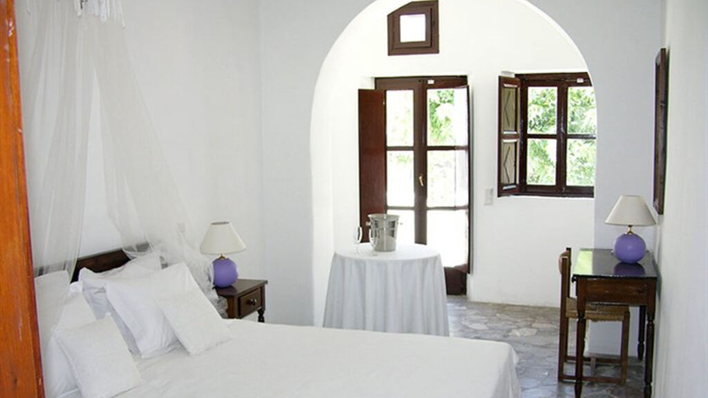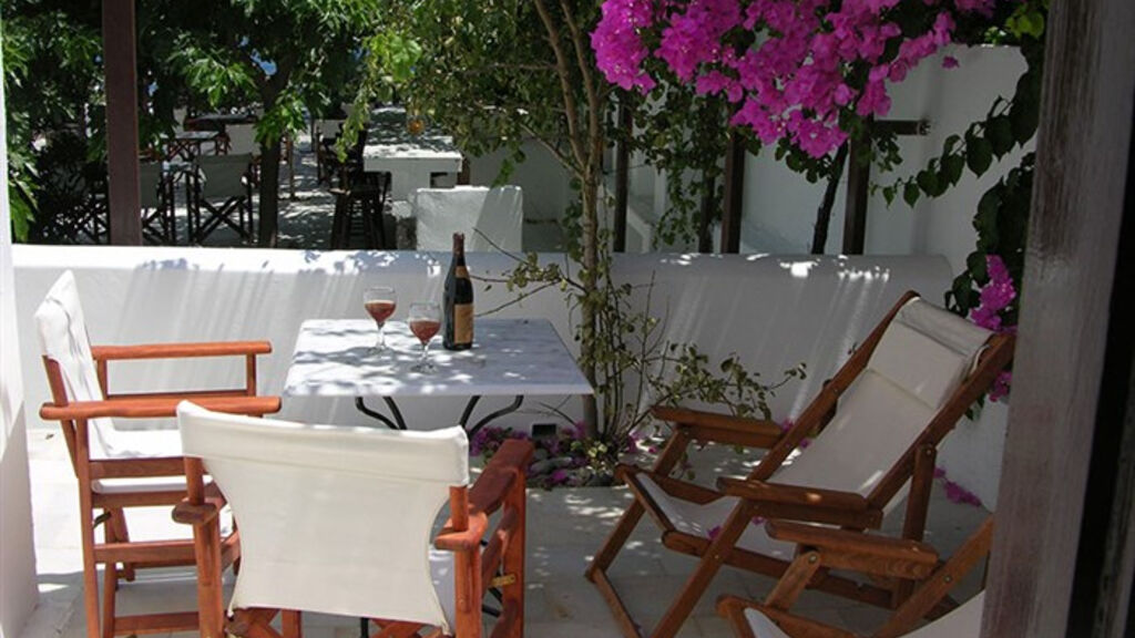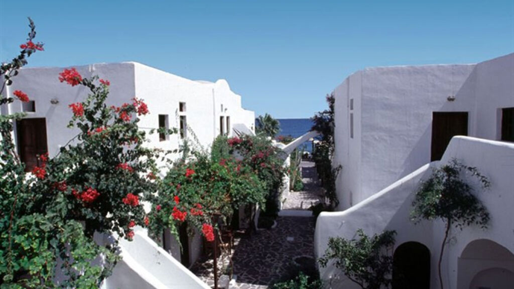 Tříhvězdičkový hotelový komplex se nachází u oblázkovo-písečné pláže v letovisku Kamari, je postaven v tradičním ostrovním stylu a leží v krásné zahradě plné buganvilií, jasmínů a sukulentů. Nabízí dvoulůžkové pokoje či apartmány až pro 4 osoby. Hotel doporučujeme všem věkovým kategoriím, kteří chtějí strávit klidnou dovolenou v rodinné atmosféře hotelu a přitom být v dosahu centra letoviska.