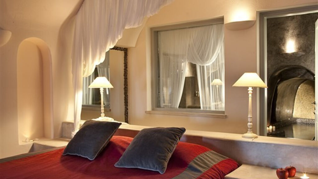 Luxusní suity jsou vystavěny kaskádovitě, v tradičním egejském architektonickém stylu a zen filozofii. Pokoje jsou zařízeny minimalisticky a poskytují romantické zázemí a intimitu.