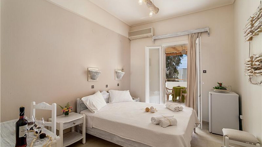 Snídaně formou bufetu. Možnost dokoupení večeří podávaných v taverně na pláži cca 600m od hotelu.